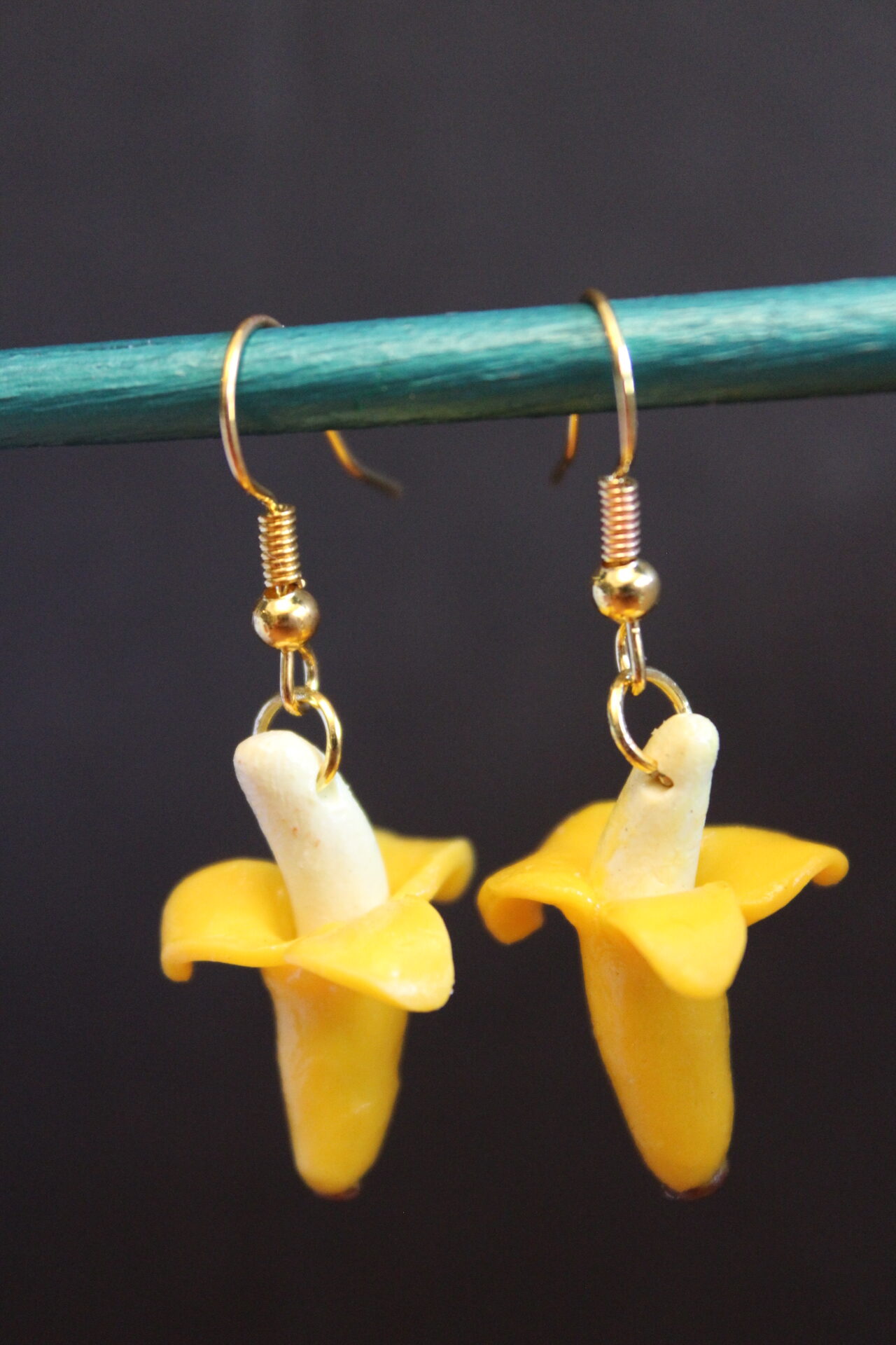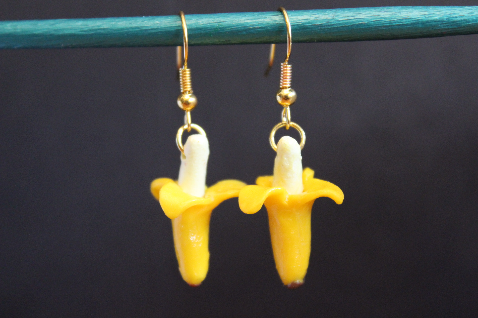 Please Note: Because each banana is sculpted by hand, each earring may appear subtly different from each other, and from the product photos.