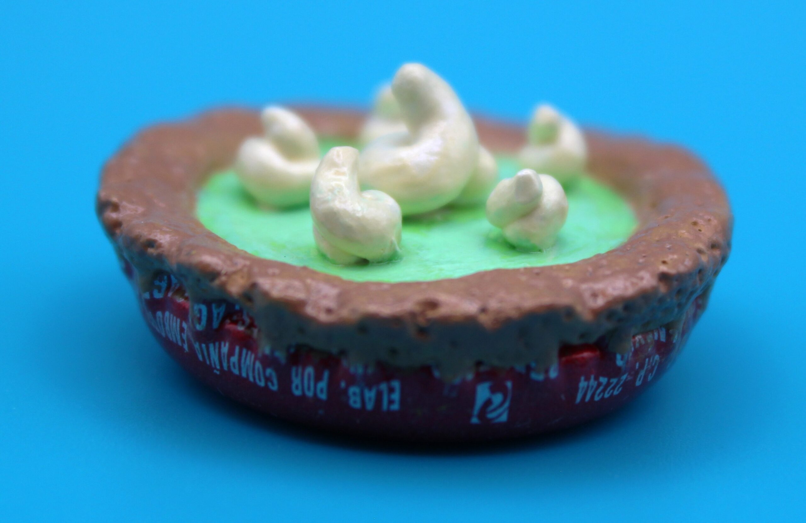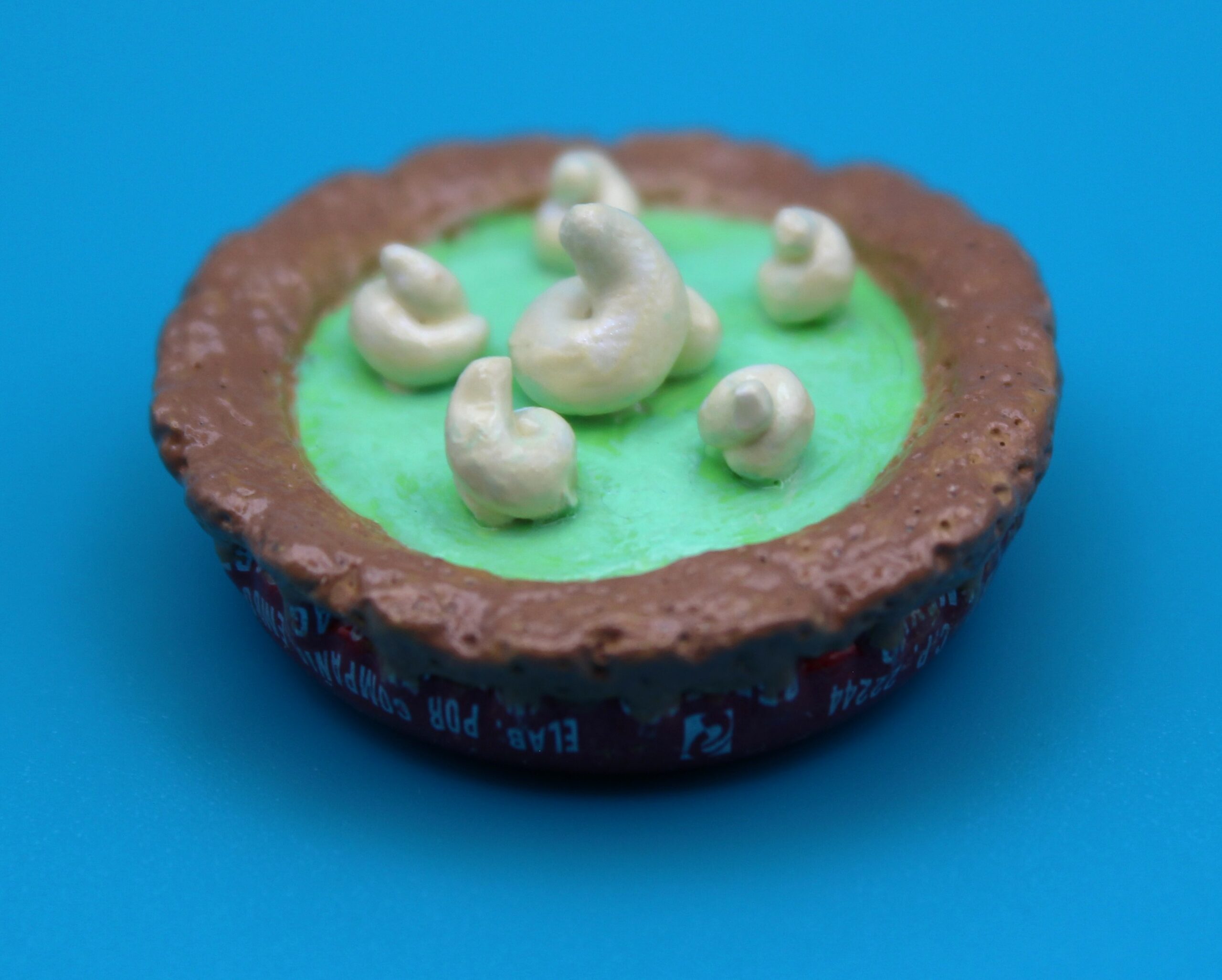 Refreshing decor! These magnets feature a bite-sized key lime pie, entirely handmade from polymer clay, in an up-cycled bottle cap pie tin. The magnet measures about 1.5 inches in diameter, and is a delightful way to add some zest to your space!